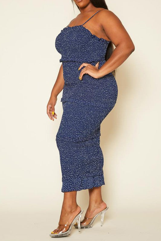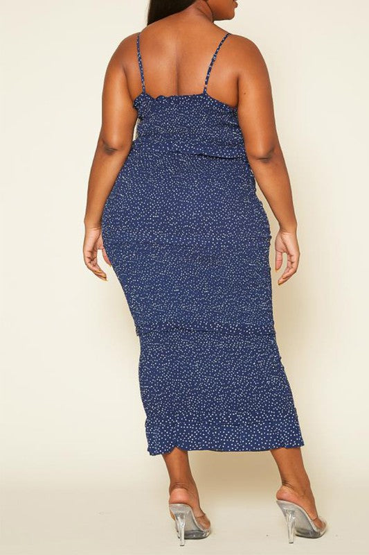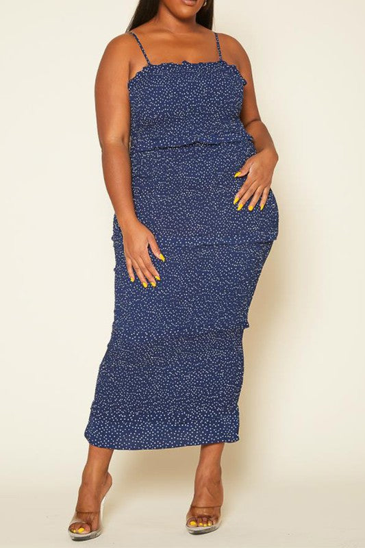 Plus size women polka dot print.(100% Polyester) Moderate stretch Model Info: Height: 5'10" Bust: 42" Waist: 37" Hip: 54" Model is wearing 1XL